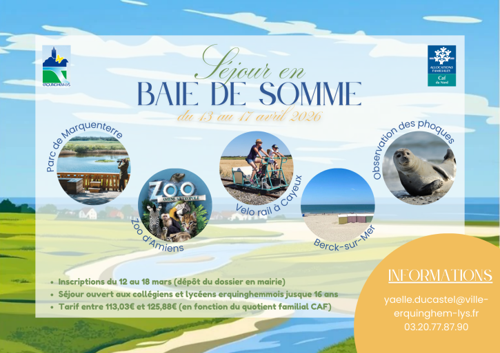 La ville organise des séjours à chaque période de vacances scolaires : 5 jours en petites vacances, 9 jours en juillet et en Août